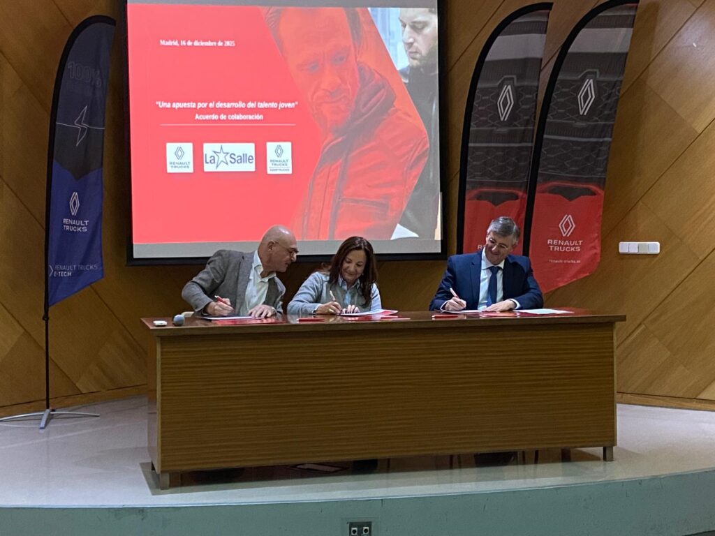 La Salle en España y Portugal y Renault Trucks España han firmado un Convenio Marco de Cooperación con el objetivo de reforzar la conexión entre la Formación Profesional y el entorno real del vehículo industrial. Esta alianza estratégica nace para impulsar la empleabilidad del alumnado, facilitar su transición al mercado laboral y dar respuesta a uno de los principales retos del sector: la necesidad de talento técnico cualificado, preparado para trabajar desde el primer día en talleres cada vez más tecnológicos y especializados.