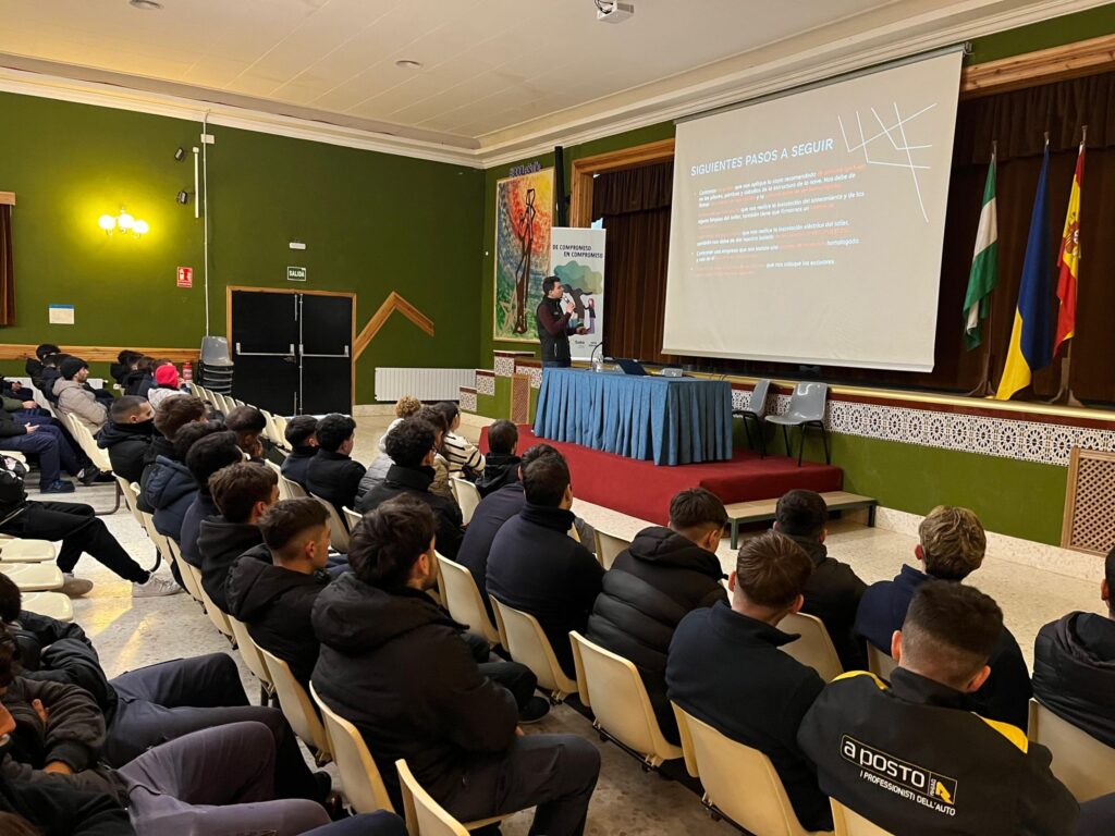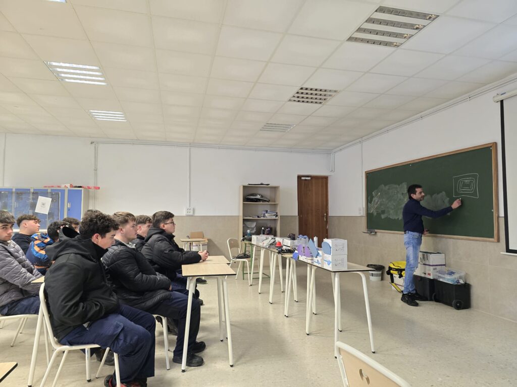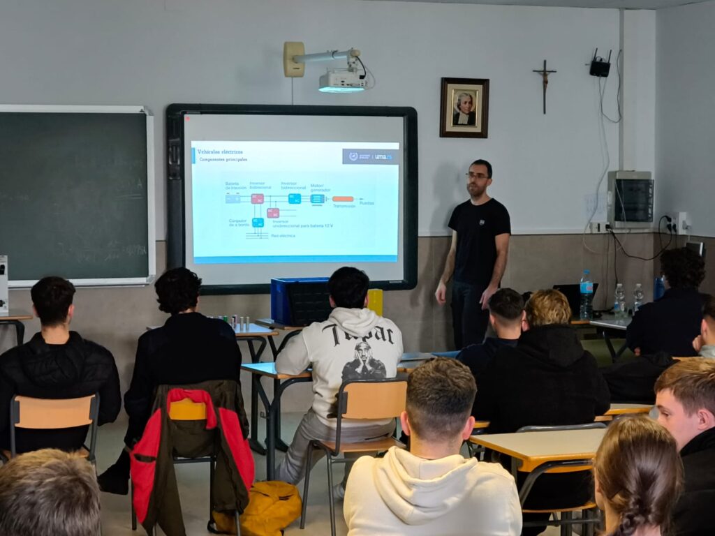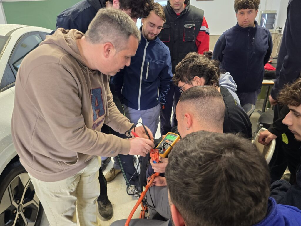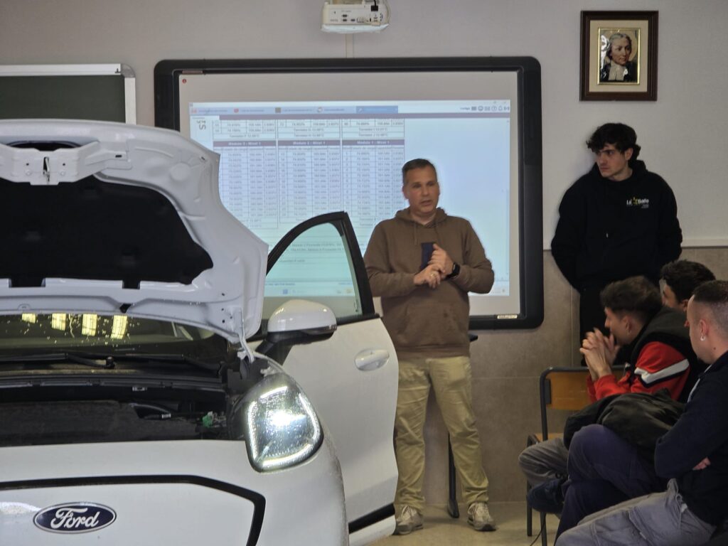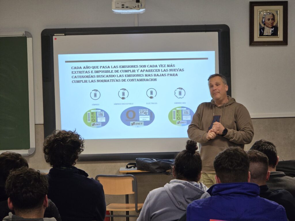 Gracias a la colaboración de este concesionario de referencia en la comarca, Luis Ortigosa ofreció una charla técnica especializada sobre la tecnología del vehículo eléctrico, abordando aspectos clave como la seguridad en trabajos con sistemas de alta tensión y los protocolos de diagnosis electrónica, competencias esenciales para los futuros técnicos.