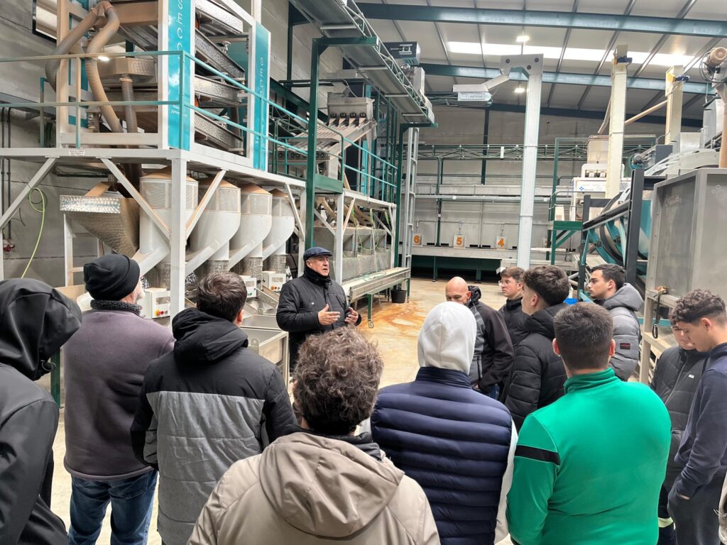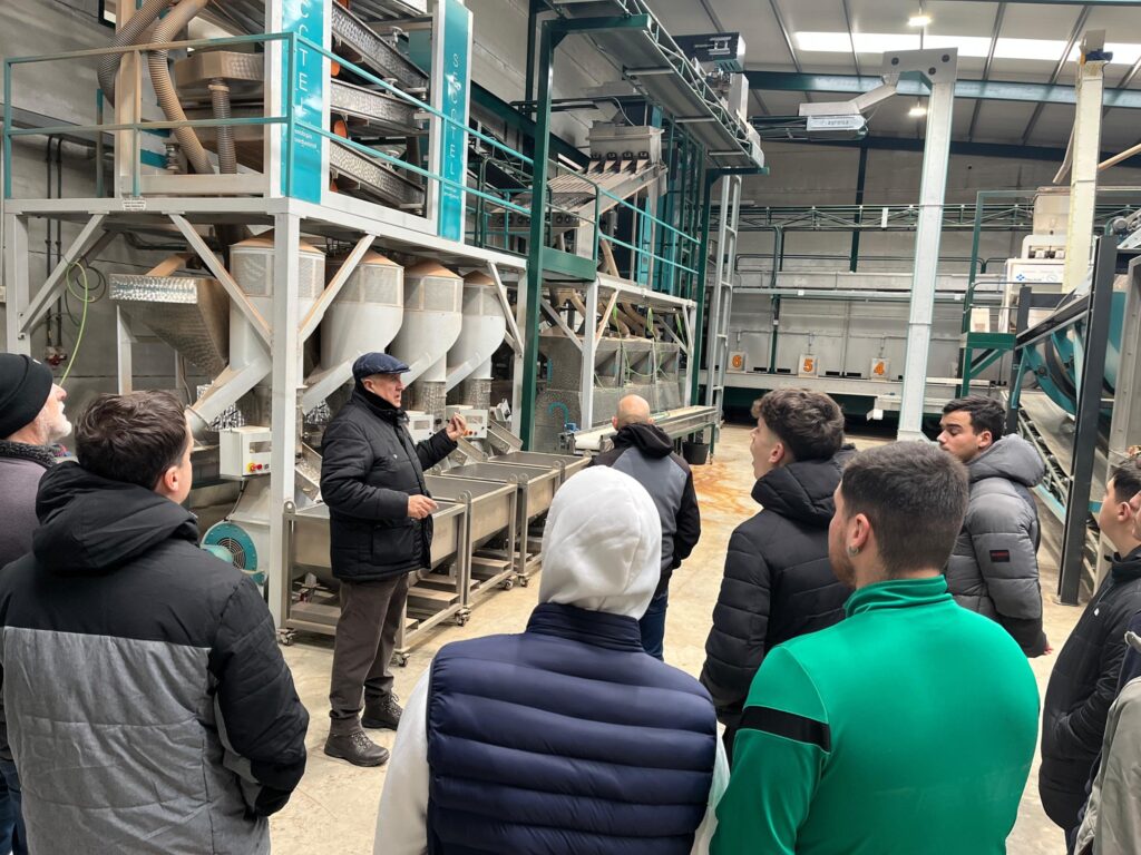 El alumnado de segundo curso de Grado Medio en Instalaciones Eléctricas y Automáticas realizó una jornada técnica en una planta de procesado de pistacho, almendra y aceituna. En este entorno productivo analizaron sistemas de energía híbrida que integran fotovoltaica, red eléctrica y grupos electrógenos, así como la programación de variadores de frecuencia y sistemas de neumática industrial aplicados a procesos reales.