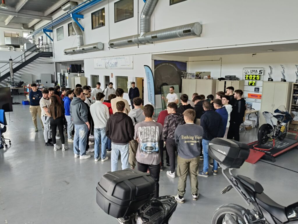 En la capital malagueña, los estudiantes visitaron la escuela de competición de la Universidad de Málaga, donde pudieron conocer el laboratorio-taller en el que se diseñan y fabrican prototipos de competición, observando el uso de materiales avanzados y métodos de fabricación basados en la innovación y el diseño.